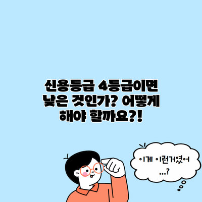 신용등급이 4등급이라면, 여러분은 아마도 고민이 많으실 거예요. 사실, 많은 사람들은 신용등급이 낮아지면 대출을 받기 어렵겠다는 불안함을 느끼곤 하죠. 그렇다면 신용등급 4등급이 정말 낮은 것인지, 그리고 어떻게 개선할 수 있는지에 대해 자세히 알아보도록 할게요.