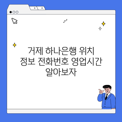 아래 표를 통해 거제 하나은행에 대한 정보를 간단히 정리해 볼게요.