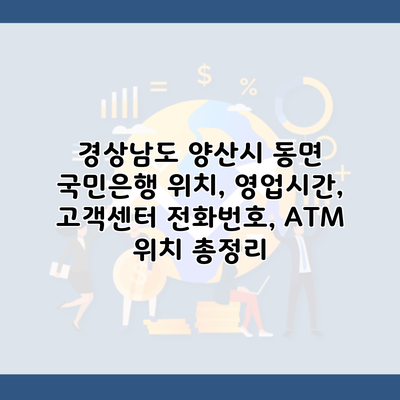 국민은행은 많은 사람들에게 신뢰받는 금융 서비스 제공자로, 특히 경상남도 양산시 동면 지역에서도 편리한 금융 거래를 지원하고 있어요. 이번 포스팅에서는 양산시 동면 국민은행의 위치, 영업시간, 고객센터 전화번호, ATM 위치에 대해 상세히 알아보겠습니다.