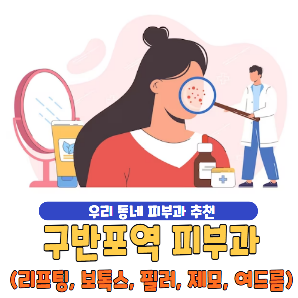 여러분 안녕하세요!^^ 오늘은 구반포역 피부과 잘하는 곳과 전문의 일요일 진료, 그리고 필러, 보톡스, 리프팅, 레이저제모, 여드름 등 다양한 정보를 소개해드리려고 합니다.