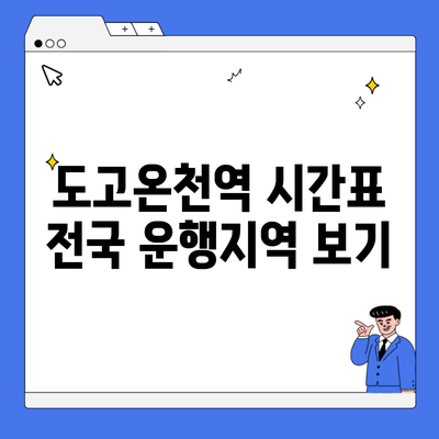 온천은 스트레스를 풀고 몸과 마음을 치유하는 최고의 장소입니다. 특히 도고온천은 그 아름다움과 효능으로 많은 사람들에게 사랑받고 있죠. 오늘은 도고온천역의 시간표와 전국 운행지역에 대해 상세히 알아보도록 할게요.