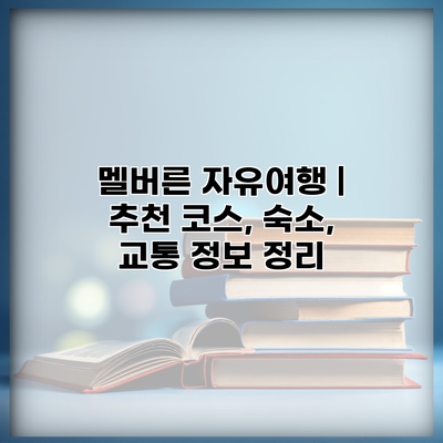 멜버른은 그 자체로 아름다운 도시로, 여행자들에게 다양한 매력을 제공하는 곳이에요. 여러분의 멜버른 자유여행이 특별하고 기억에 남는 경험이 되길 바라요. 마음에 드는 코스를 선택하고, 여러분만의 멜버른을 찾아보세요!
