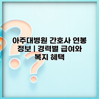 ✅ 아주대병원의 매력적인 간호사 급여와 복지 혜택을 알아보세요.