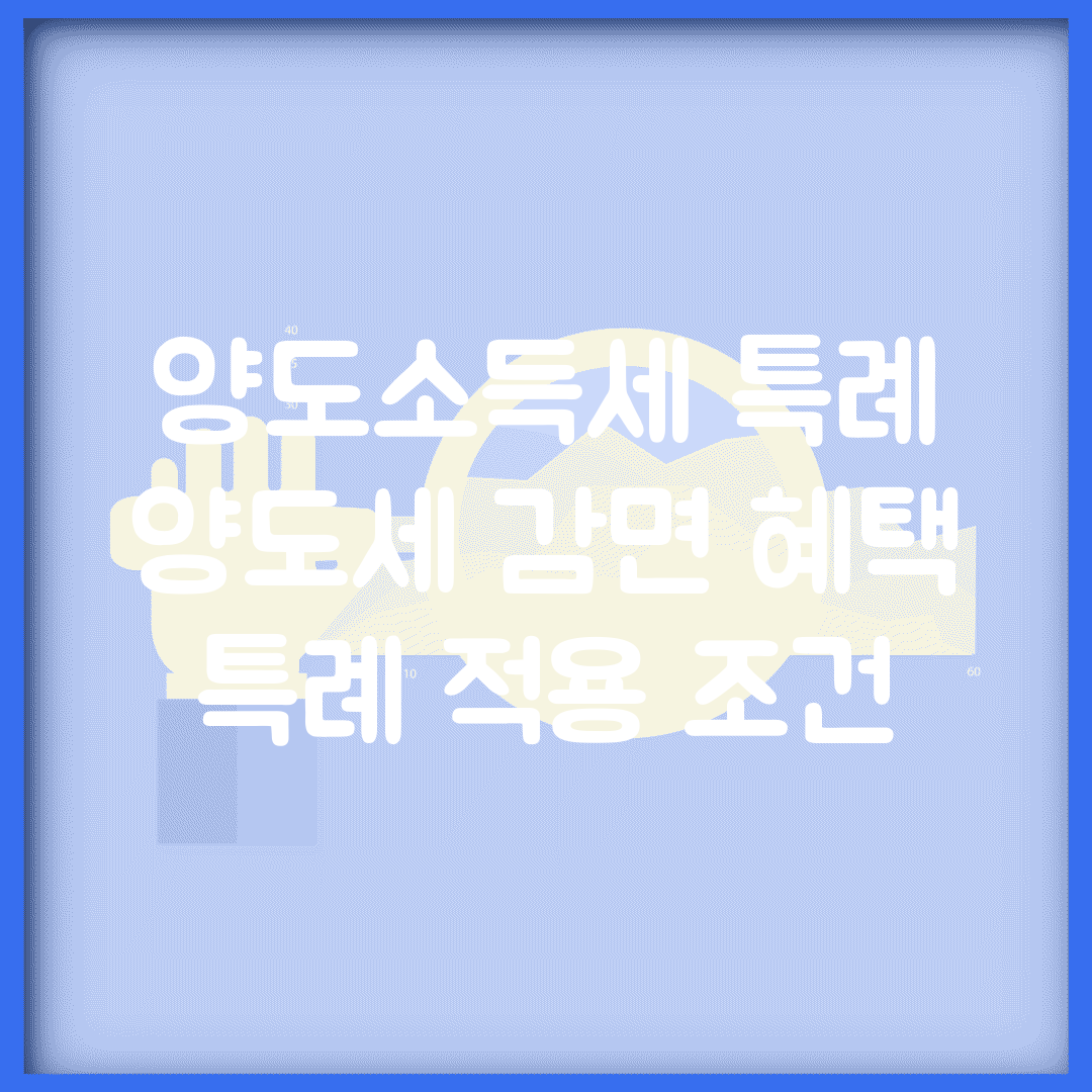 양도소득세 특례는 특정 조건 하에 양도세 감면 혜택을 제공합니다. 이는 부동산 거래 시 세금 부담을 줄여주는 효과적인 제도입니다. 특례 적용 조건을 꼼꼼히 확인하여 세금 혜택을 놓치지 않는 것이 중요합니다.
