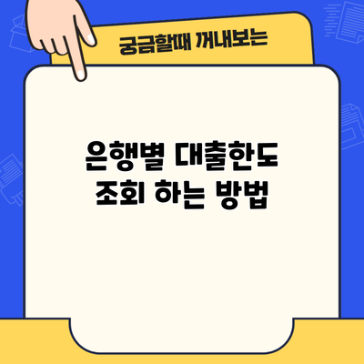 대출 한도는 각 은행마다 상이하므로, 다음의 방법을 통해 직접 확인하는 것이 필요해요.