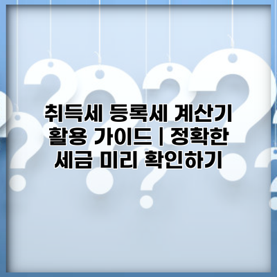 취득세와 등록세 계산기를 활용한 스마트한 세금 관리 가이드