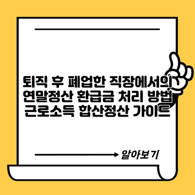 퇴직 후 폐업한 회사에서의 연말정산 환급금 처리 방법은 많은 사람들이 궁금해하는 복잡한 주제입니다. 특히 최근에는 다양한 업무 형태가 늘어나면서 이러한 복잡성이 더욱 증가하고 있어요. 퇴직 후 폐업한 직장에서 받은 근로소득은 어떻게 정산해야 할까요? 이 질문에 대한 답을 함께 찾아보아요.