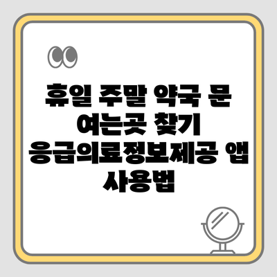 주말이나 휴일에 열려 있는 약국을 찾는 방법은 다양해요. 응급 상황에 대비해 미리 정보를 알아두는 것이 중요해요. 이제는 응급의료정보제공 앱을 활용하여 쉽게 약국을 찾을 수 있으니, 평소에 이런 앱을 설치하여 사용해 보세요. 불확실한 상황을 대비하는 것은 항상 중요한 일이에요.