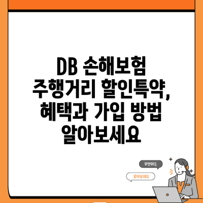 ✅ DB 손해보험 주행거리 할인특약의 혜택을 자세히 알아보세요.