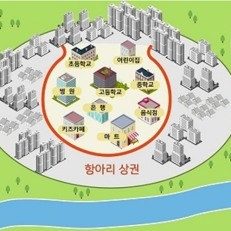 항아리 상권은 상업집중구역의 특정 형태로, 중간에 큰 점포가 위치하고 주변에 작은 상점들이 고리처럼 둘러싸여 있는 구조를 가지고 있어요. 이 중심이 되는 점포는 종종 대형마트나 백화점 등이 존재하여, 많은 소비자들을 끌어모으는 역할을 하지요. 이러한 구조는 “항아리”라는 이름에서 알 수 있듯이, 중심 점포가 상권의 항아리 몸체의 역할을 하며, 주변의 소규모 상점들이 항아리 입구의 구멍처럼 그 안으로 소비자를 유도하게 되는 것이에요. 그래서 전반적으로 매우 신기한 구조라 할 수 있죠!